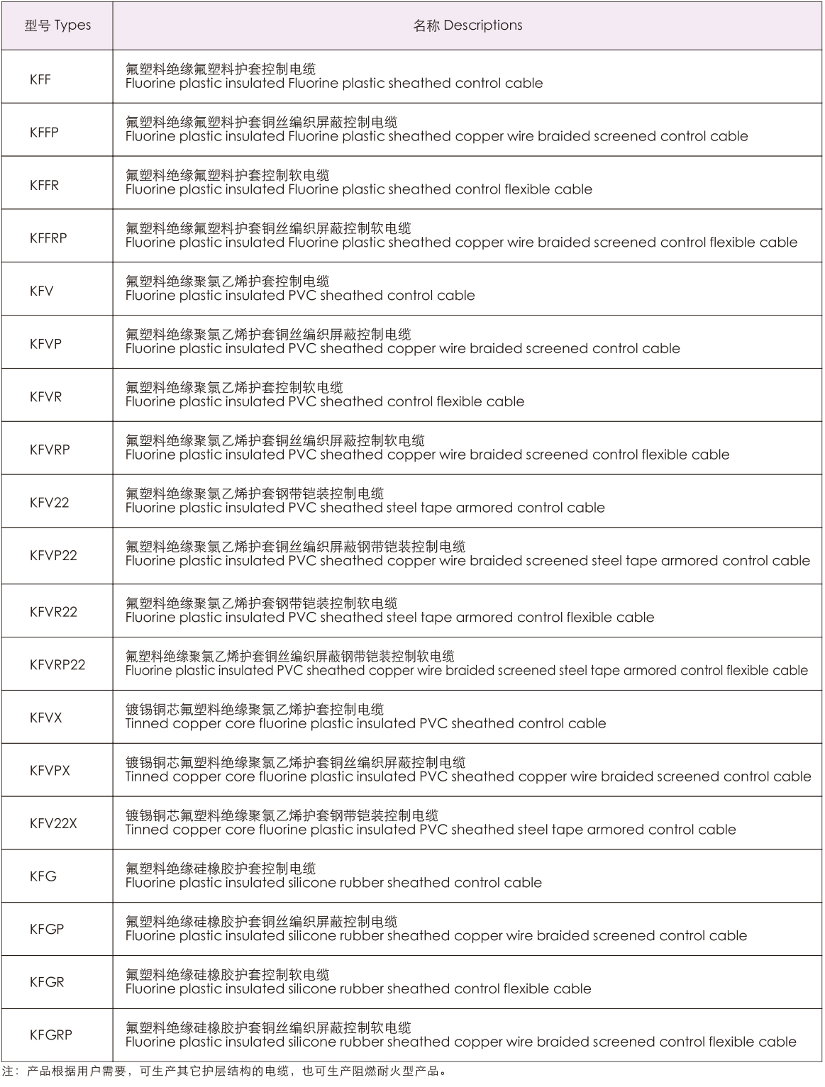 本產品適用干交流額定電壓450/750V及以下電器儀表的連接線和自動控制系統的傳輸線,它與普通塑料絕緣控制電纜相比,絕緣采用氟塑料,產品具有比普通控制電纜更高的耐熱等級,具有耐油、防水、耐磨、耐腐蝕性氣體、耐老化、不燃燒等優異性能,主要適用于冶金、電力、石化等行業具有移動耐溫等特殊要求的場合。