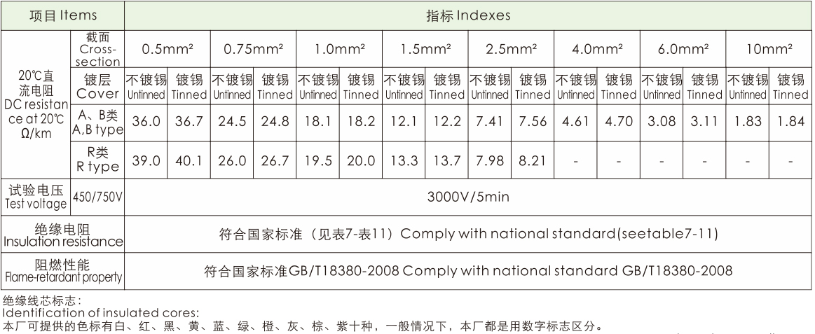 執行標準Q/321084KLAO86 使用特性額定電壓Uo/U:450/750V;工作溫度:聚氯乙烯絕緣電纜不超過70℃交聯聚乙烯絕緣電纜不超過90℃